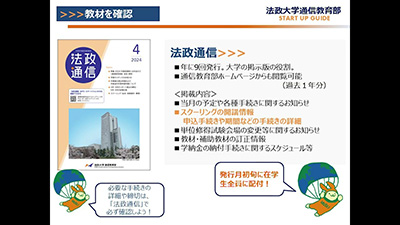 法政大学通信教育部では科目ごとに「科目構成単位」が決まっており、この「科目構成単位」を満たすように学習を進めます。科目構成単位を満たすには、単一の学習方法で学習しても良いですし、複数の学習方法を組み合わせても構いません。